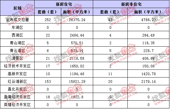 2017年9月6日南昌新房共成交301套,其中住宅仅成交252套,非住宅共成交49套,住宅红谷滩以153套成交排第一。